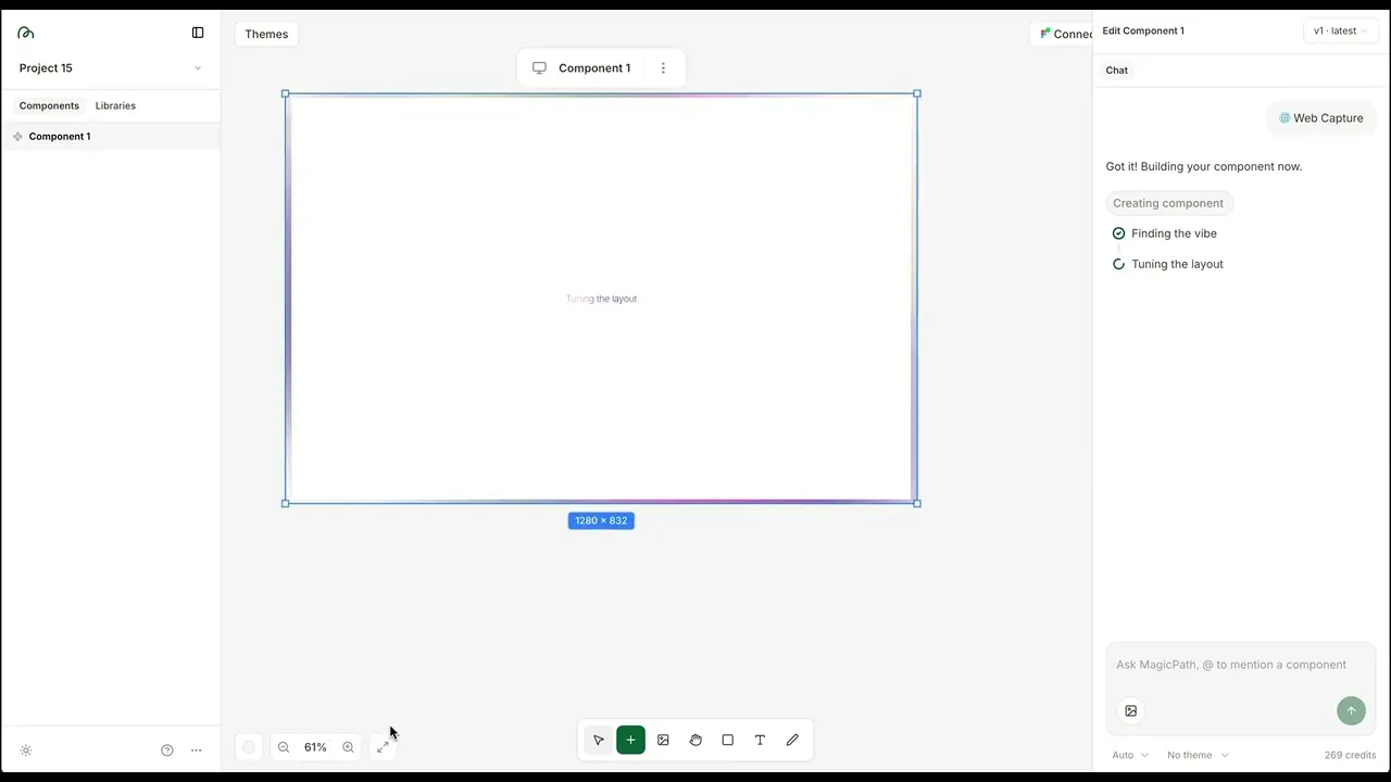Instead of recreating it in another tool, I was able to capture what I’d already shipped and start building on top of it with MagicPath’s canvas.