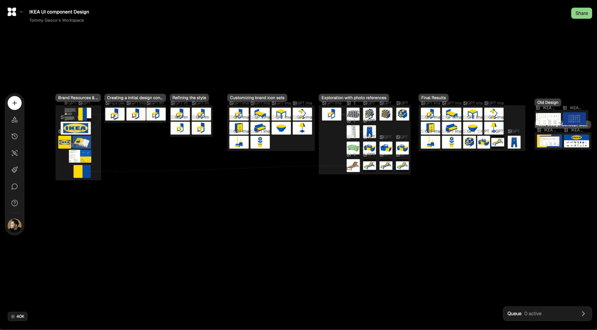 This team took a starting prompt through 6 grouped workflows to come up with a robust set of branded assets used for IKEA’s product navigation.
